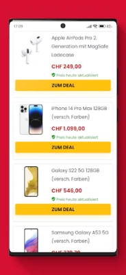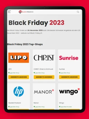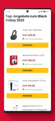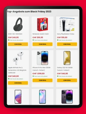 Durch die Zusammenarbeit mit hunderten Geschäften können wir die beliebtesten Angebote vor allen anderen anzeigen. Mit der Black Friday App von Black-Friday.ch verpasst du kein Angebot für Elektronikprodukte, Mode, Wohnen oder Lebensmittel.