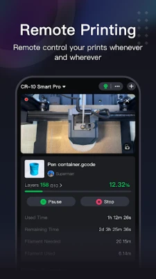This app provides a convenient user experience, allowing you to distribute print tasks and remotely control your 3D printer. You can also monitor the printing status in real-time, no matter where you are, enabling you to perform 3D printing operations anytime, anywhere.