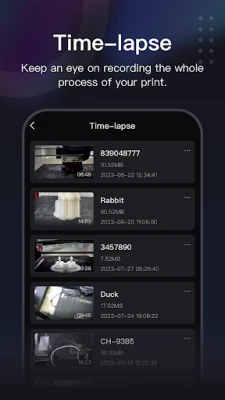 Additionally, you can record the printing process, create time-lapse videos, and share your 3D printing creations with friends.