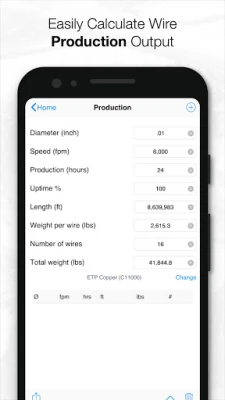 • Production Optimization: Accurately estimate the length or weight of wire produced in a given timeframe. Reverse calculations are also supported, allowing you to determine the necessary production time for specific wire amounts.