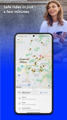 - Get informed immediately about the price estimation of the ride and the arrival time of the nearest driver