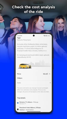 Taxi in a few minutes, see the price estimation of the ride, choose vehicle type and move fast and with safety. Taxi.gr is an application with which every taxi ride gets comfort, style and safety!
