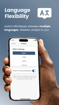 Real-Time Monitoring: Get precise decibel readings instantly. Data Logging: Save key sound level readings for future reference. Educational Insights: Learn about noise pollution and its effects on health. Threshold Alerts: Set custom sound thresholds and receive notifications when exceeded. Multi-Language Support: Available in English, Greek, Chinese, Russian, and more. Customizable Experience: Personalize app settings to suit your needs. Download dbMeter today and turn your device into a powerful sound level meter!