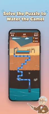 ✔️ Beautiful Desert Theme: Immerse yourself in the stunning desert environment, with beautifully crafted graphics that bring the arid landscape to life. Watch as the water flows through the pipes, bringing relief to the thirsty camel.