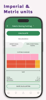 Easily switch between metric (meters) and imperial (yards/inches) units to suit your quilting needs.