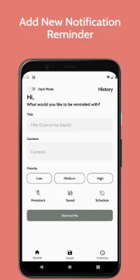 A notification reminder app where you can set reminder as notification instantly or set a schedule for the notification to be pushed. You can also view your past notifications.