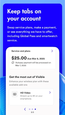 The Visible app makes managing your service easy - you can make a payment, upgrade your plan and get 24/7 assistance in just a few taps. Here’s a glimpse of what else you can do in the app: